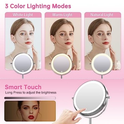 - 【3가지 색상 조명 및 밝기 조정 가능】 배율이 있는 조명 화장 거울에는 3가지 조광 수준이 있습니다. 센서 스위치를 짧게 누르면 빛의 색상이 변경되고, 길게 누르면 빛의 밝기가 조정되며 다양한 환경에서 모든 요구 사항을 충족합니다.