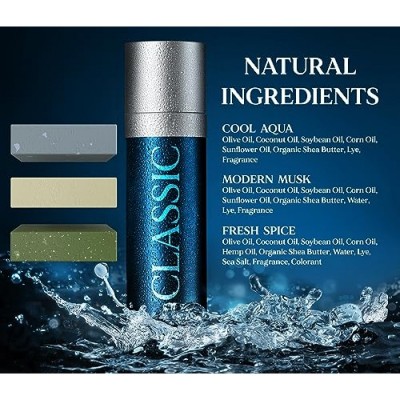 - MEN'S COLOGNE – 남성 향수 같은 향이 나는 비누입니다. CLASSIC은 당신이 맡고 싶은 남성적인 향기를 되찾아줍니다. 과일 향은 전혀 없고, 남성용 코롱의 좋은 향만 납니다. 숲속 향부터 스파이시 향까지 CLASSIC으로 최고의 남성용 코롱 비누를 만들었습니다.