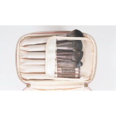 - 별도의 브러쉬 수납공간: 상단 플랩에는 여행 중에 10개 이상의 다양한 크기의 브러쉬를 보관할 수 있는 벨크로 테이프가 있는 투명 메이크업 브러쉬 커버가 있는 6개의 슬롯이 포함되어 있습니다. 투명 커버는 청소가 쉽고 브러시를 먼지로부터 보호합니다.