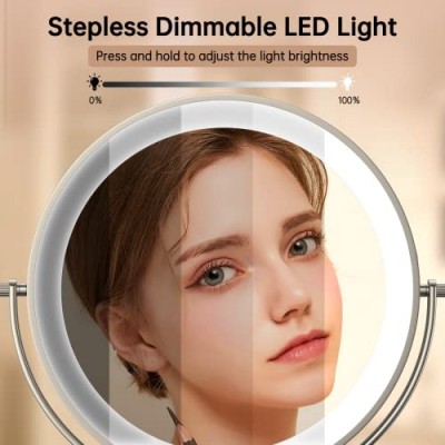 Anfauny 8인치 조명 화장 거울(배율 포함), 3가지 색상 조명이 있는 1X/10X 양면 화장 거울, 충전식 54 LED 밝기 조절이 가능한 터치 센서 및 360° 회전 탁상용 화장 거울, 니켈     상품설명 - 【충전식 및 무선 디자인】 - 1500mAh 충전식 리튬 폴리머 배터리가 내장된 Anfauny 조명 화장 거울은 완전히 충전된 후 가장 밝은 빛 아래에서 8-10시간 동안 지속적으로 작동합니다. 재충전이 불가능한 다른 조명 거울을 사용하여 배터리 구입 비용을 절약하세요. USB 케이블이 포함되어 있으며 표준 DC 5V 포트를 사용하여 충전할 수 있습니다. 무선 디자인의 이 조명 화장 거울은 이동이 가능하므로 여행 중에도 가지고 다닐 수 있습니다.