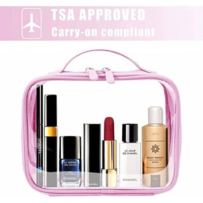 ANRUI TSA 승인 세면도구 가방, 핸들 스트랩이 있는 TSA 세면도구 가방, 액체용 투명 여행 가방, 세면도구, 화장품, 여성용 및 남성용 투명 세면도구 가방(동일한 크기)상품설명 - 패브릭 안감