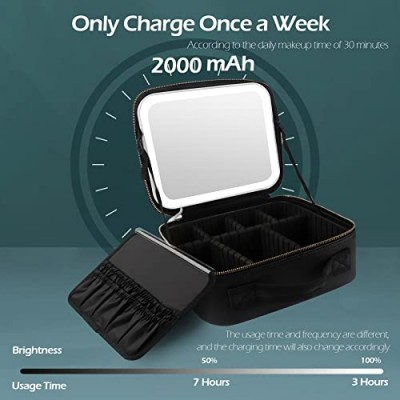 - 【4K 메이크업 거울이 포함된 전문 3색 채우기 조명】화장품 케이스에는 8.26*13.78인치 전체 화면 조명 거울이 포함되어 있습니다. 스위치를 길게 누르면 조명 밝기를 0%에서 100%까지 조정할 수 있으며 스위치를 가볍게 터치하면 쉽게 색상을 조정할 수 있습니다. 차가운 빛, 자연광, 따뜻한 빛 사이의 온도로 피부 상태와 얼굴 디테일을 반영하여 세련된 파티 메이크업, 출퇴근 메이크업, 데일리 메이크업까지.