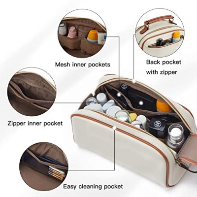 Telena 여행 세면 용품 가방 메이크업 화장품 가방 여성용 방수 PU 가죽 세면 용품 주최자 브라운과 휴대용 대용량 베이지     상품설명 - 방수 세면도구 가방 - Telena 여행용 세면도구 정리함은 내구성이 뛰어난 방수 PU 가죽으로 제작되었습니다. 욕실이나 샤워실 등 습한 환경에서도 청소가 쉽고 빠르게 건조됩니다. 탁월한 유선형 접합 공정은 세면도구 가방의 모양을 그대로 유지하고 탁월한 보호 기능을 제공합니다. 내구성을 손상시키지 않으면서도 패션과 아름다움을 동시에 선사합니다. 매일 사용하거나 가족 나들이에 적합합니다. 세면도구가 모두 담긴 팩