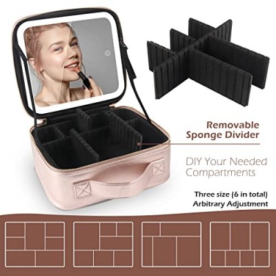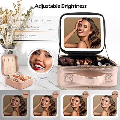 조명 거울 조명 메이크업 케이스가 포함된 Wangselect 메이크업 가방 조절 가능한 분배기, 보석 상자 및 1x/10x 확대 거울 샴페인이 있는 조명 메이크업 케이스     상품설명 - 【USB 충전식 휴대용 스마트 메이크업 케이스】WangSelect의 여행용 메이크업 트레인 케이스에는 4K 은도금 스마트 화장 거울이 있으며 2000mAh 충전식 리튬 배터리가 내장되어 있어 매일 필요에 따라 자주 충전하거나 더 이상 배터리를 교체할 필요가 없습니다. 메이크업 시간은 30분이며 일주일에 한 번만 충전되어 여행에 편리합니다.