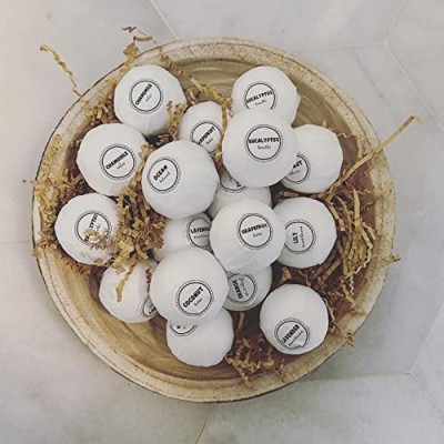 - 에센셜 오일: 각 입욕제에는 다음과 같은 다양한 에센테일 오일/향/스티커가 포함되어 있습니다: 라벤더/라벤더/스위트 드림, 강황/코코넛/밸런스, 유향/오렌지/스트레스 완화, 카모마일/카모마일/릴랙스, 유칼립투스/유칼립투스/호흡, 자몽/자몽/디톡스.
