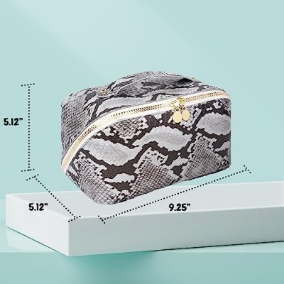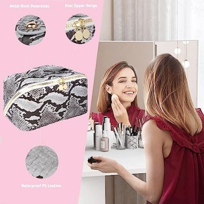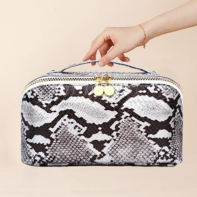 BAMXSXBO 대용량 여행 메이크업 가방, 여성용 방수 휴대용 여행 화장품 가방, 손잡이 뱀 가죽이있는 오픈 플랫 PU 가죽 세면 용품 가방 주최자상품설명 - 【프리미엄 소재】: 관리가 쉽고 깨끗하게 닦을 수 있는 고품질 PU 가죽 원단으로 제작된 우아하고 대용량의 메이크업 정리 가방입니다. 특수 처리된 방수 표면이 특징인 이 메이크업 가방은 화장품이 건조하고 잘 유지되도록 해줍니다. -protected.여행 필수품을 위한 안정적이고 스타일리시한 솔루션이 필요한 바쁜 여성에게 적합합니다.