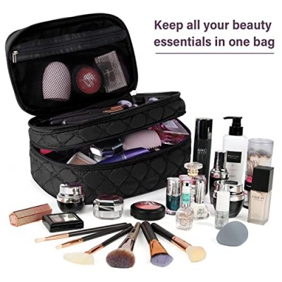 NUBILY 메이크업 가방 핸들이있는 휴대용 여행 화장품 가방 대형 더블 레이어 세면 용품 가방 2Pcs 여성과 소녀를위한 방수 메이크업 가방, 블랙상품설명 - 대용량: 메인 메이크업 가방의 크기는 10.6 x 6.3 x 5.1인치입니다. 액세서리 화장품 가방의 크기는 6.7 x 5.1 x 2.4인치입니다. 적당한 크기의 휴대용 손잡이로 모든 물건을 깔끔하게 정리할 수 있으며 어디든 쉽게 휴대할 수 있습니다. 립스틱, 아이섀도, 마스카라 등에 적합합니다.