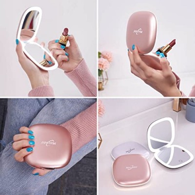 소형 LED 확대 여행용 화장 거울 - 4인치 1X/10X 배율 소형 핸드 포켓 밝기 조절이 가능한 양면 USB 충전식 터치스크린, 휴대용 탁상용 화장품(로즈 골드)     상품설명 - 【1X 및 10X 돋보기】: 이 1X LED 밝은 평면 거울은 전반적인 메이크업을 확인하고 일광을 시뮬레이션하고 밝지만 눈부시지 않은 데 적합합니다. 자세한 내용은 10X LED 조명 돋보기를 사용하세요. 최상의 결과를 얻고 현기증을 예방하려면 10X 확대경을 사용할 때 거울을 얼굴에서 2~3인치 떨어진 곳에 두십시오. 마스카라, 립스틱 바르기, 블랙헤드/잡티 제거, 콘택트 렌즈 착용에 적합합니다.