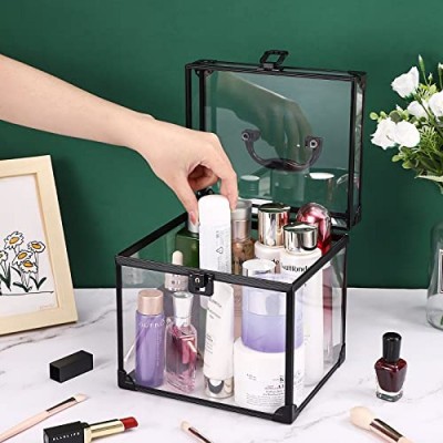 Noverlife 휴대용 화장품 및 세면도구 정리 상자, 래치 및 손잡이가 있는 투명 기차 케이스 여행용 메이크업 도구 보관 정리함, 메이크업 도구 상자 욕실 액세서리 케이스(7.9x6.7x7.5인치)상품설명 - 【물건을 깔끔하게 보관하세요】-- 다양한 물품을 보다 체계적이고 깔끔하게 보관할 수 있는 깊고 넓은 수납공간입니다. 메이크업 아티스트와 메이크업 애호가에게 적합합니다. 크기 크기는 약 20 x 17 x 19cm/7.9 x 6.7 x 7.5인치입니다. (️참고: 메이크업 제품은 포함되어 있지 않습니다.️)