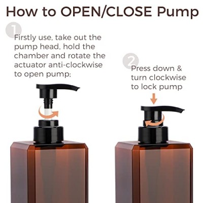 - 사용하기 쉬움 - 병 구경이 넓은 병 기능으로 펌프 로션 용기에 액체를 채우는 데 편리합니다. 로션 펌프를 잠그고 로션이 새는 것을 방지하고 누르고 시계 방향으로 돌려 닫고 시계 반대 방향으로 돌려 열어 사용합니다. 플라스틱 압력 펌프 헤드는 가볍게 눌러 사용하면 좋은 사용감을 느낄 수 있습니다.