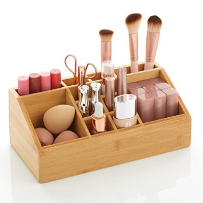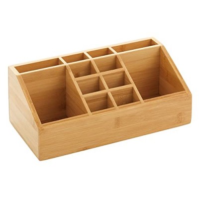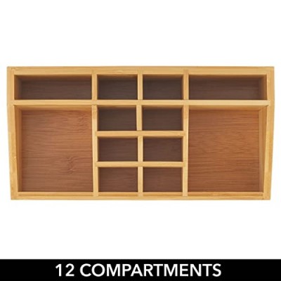 mDesign 대나무 메이크업 화장품 정리함 보관 센터(욕실 조리대, 세면대용 섹션 12개 포함) - 브러쉬, 립스틱, 립글로스, 컨실러, 마스카라, 아이 펜슬 보관 - 천연상품설명 - 12개의 수납공간: 12개의 별도 슬롯이 있는 이 편리한 화장품 정리함으로 조리대를 깨끗하고 깔끔하게 유지하세요. 브러쉬, 메이크업, 화장품, 컨실러, 향수 및 팔레트 슬롯용; 컴팩트한 디자인과 깨끗한 표면으로 모든 각도에서 보관된 물건을 볼 수 있어 필요한 물건을 빠르고 편리하게 꺼낼 수 있습니다.