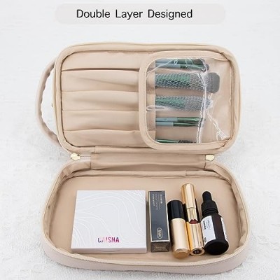 - 더블 레이어 디자인 메이크업 가방: Onayle 대형 메이크업 가방 더블 레이어 화장품 가방은 상부 및 하부 더블 레이어 디자인으로 제공됩니다. 윗층에는 스킨케어 제품과 각종 화장품을 담을 수 있고, 아래층에는 메이크업 브러쉬, 아이라이너, 립글레이즈 등을 담을 수 있습니다. 메이크업 소품 정리가 매우 쉽고 편리합니다. 여성과 소녀들을 위한 최고의 화장품 가방 선택입니다.