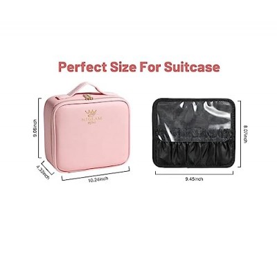 - 정돈되고 넓음: 조절 가능한 칸막이와 메이크업 브러시 홀더로 메이크업과 미용 제품을 깔끔하게 정리하세요. 우리의 메이크업 정리 가방은 여행 및 가정에서 사용하기에 완벽한 크기이며 방수 디자인으로 제품을 안전하고 건조하게 유지합니다.