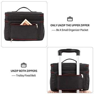 - 휴대 용이성 —— 우리 화장품 가방에는 3가지 휴대 방법이 있습니다. 상단에 견고한 운반용 손잡이가 있습니다. 가방 측면에 걸 수 있는 어깨끈; 트롤리 위에 맬 수 있고 외부 지퍼 포켓으로도 사용할 수 있는 이중 지퍼 러기지 스트랩! 매우 사려 깊은 디자인!
