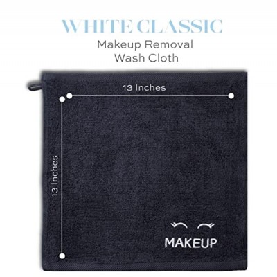 - 에어비앤비 호텔 별장에 꼭 필요한 제품입니다. 이 흰색 클래식 블랙 메이크업 리무버 수건은 12개 팩으로 제공되며 완벽한 크기는 13" x 13"입니다. 당신이 찾고 있는 정확한 크기는 무엇입니까? 이 얼굴 수건은 어떤 경우에도 선물로 완벽한 선택이 될 것입니다.