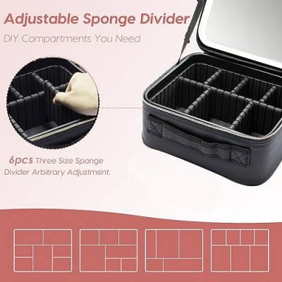 - 다기능 화장품 정리함 이 여행용 메이크업 케이스에는 탈부착 가능한 EVA 배플과 대형 메이크업 브러시 정리함이 함께 제공되어 거울을 보호하면서 깔끔함을 보장합니다. 또한 다양한 크기의 화장품과 메이크업 브러쉬를 수용할 수 있으며, 칸막이 표면에 안티드롭 스폰지 패드가 있어 내부의 화장품과 뷰티 액세서리를 잘 보호할 수 있습니다.