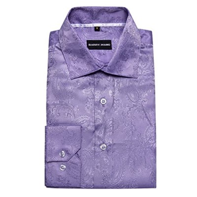 Barry.Wang 남성 드레스 셔츠 페이즐리 실크 버튼 셔츠 남성용 긴 소매 독특한 공식/캐주얼 스타일 요약정보 및 구매