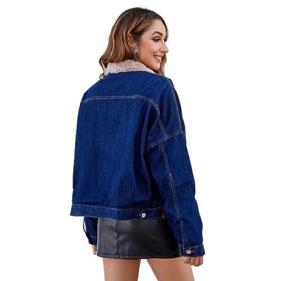 Atnlewhi 여성용 레트로 셰르파 라이닝 데님 자켓 따뜻한 진 코트 포켓이있는 두꺼운 겉옷 요약정보 및 구매