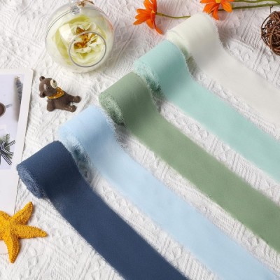Waylipun 3 롤 5cm x 6.4M 선물 리본 활 리본 결혼식 축제 리본 쉬폰 리본 장식 리본 선물 포장 부케 청첩장 DIY 공예 (흰색)