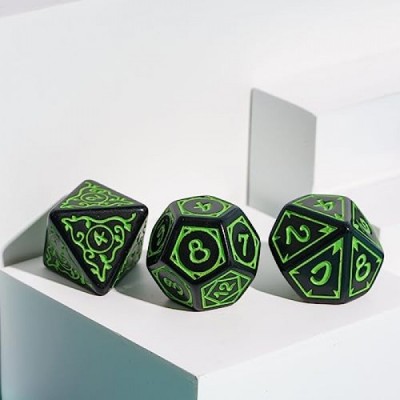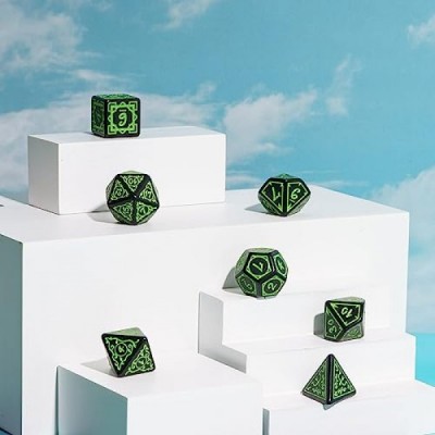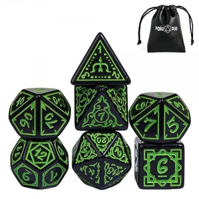 Poludie DND Dice Set -D&D Polyhedral Dice (7 Pcs) Druid Dice with Leather Dice Bag for Dungeons and Dragons Role Playing Dice Games RPGs(Druid - Black Green)