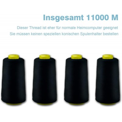 NäHgarn Overlockgarn 100% Polyester Schwarz NäHgarn Set FüR NäHgarn Faden Garn NäHmaschine 4 NäHgarn Zwirn ReißFest NäHmaschinengarn Thread NäHfaden Overlock Garn 40/2 Je 2745 M, Insgesamt 11000m