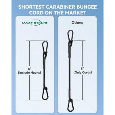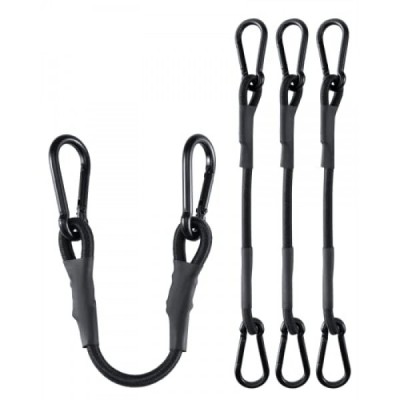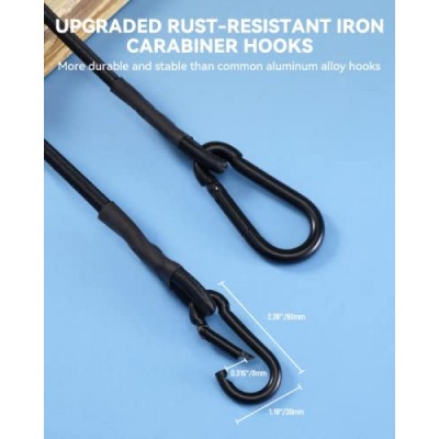 8 짧은 소형 카라비너 번지 코드, 최대 파손 강도 190파운드, 검은색 미니 UV 방지 번지 스트랩, 업그레이드된 카라비너 후크, 화물, 텐트, 자전거, 카약 보트,