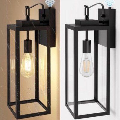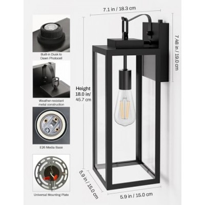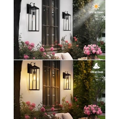 DORESshop 18 Inch Large Size Dusk to Dawn Outdoor Wall Lights, Matte Black Waterproof Anti-Rust Outdoor Light Fixtures Wall Mount with Clear Glass Shade for Porch, Garage, Doorway, 2 Pack