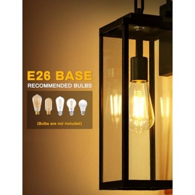 DORESshop 18인치 대형 황혼 새벽 야외 벽 조명, 매트 블랙 방수 녹슬지 않는 야외 조명기구 현관, 차고, 출입구, 2팩용 투명 유리 그늘이 있는 벽 마운트
