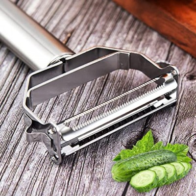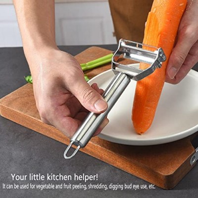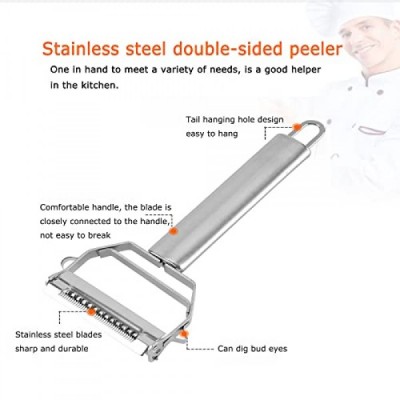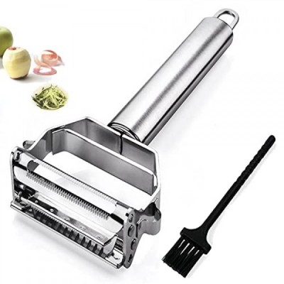 Julienne Peeler Vegetable Peeler Dual Blade Stainless Steel Cutter Slicer with Cleaning Brush for Carrot, Cucumber, Fruit, Multifunctional Peeler for Kitchen