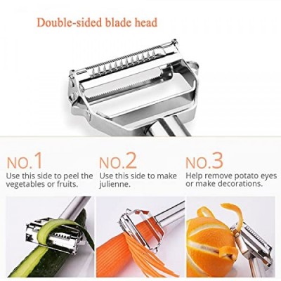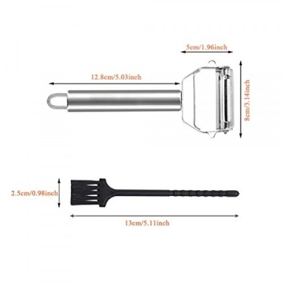Julienne 필러 야채 필러 듀얼 블레이드 스테인레스 스틸 커터 슬라이서 (당근, 오이, 과일, 주방용 다기능 필러 용 청소 브러시 포함)