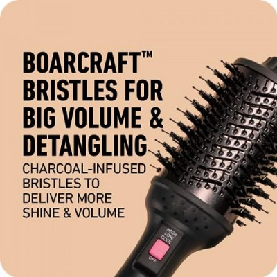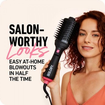 BOLDIFY Professional Blow Dry Brush - for Silky Shiny Curls, Waves, or Straightener - BoarCraft™ Charcoal Infused Hair Dryer Brush w/Volumtech™, Anti Frizz Advanced ION Generator Technology