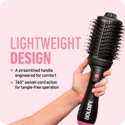 BOLDIFY 프로페셔널 블로우 드라이 브러시 - 부드럽고 빛나는 컬, 웨이브 또는 스트레이트너용 - BoarCraft™ 숯 주입 헤어 드라이어 브러시(Volumtech™, 곱슬 방지 고급 이온