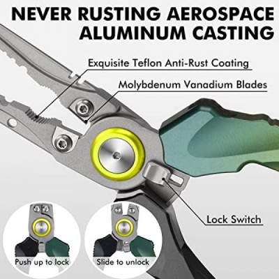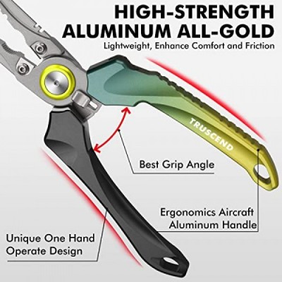 낚시 엉뚱한 장비 도구가 포함된 TRUSCEND 낚시 펜치 키트, 바닷물 방지 테플론 코팅 다기능 낚시 장비, 물고기 후크 제거제 분할 링 플라이어 플라이 낚시 도구, 남성용