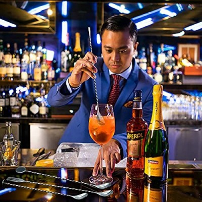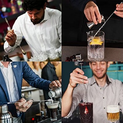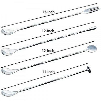 JETKONG 4 Pcs Bar Spoons Cocktail Mixing Spoon 12-Inch Bar Stirring Spoon Stainless Steel Cocktail Stirrer, Long Handle Drink Stirrers Cocktail Spoons
