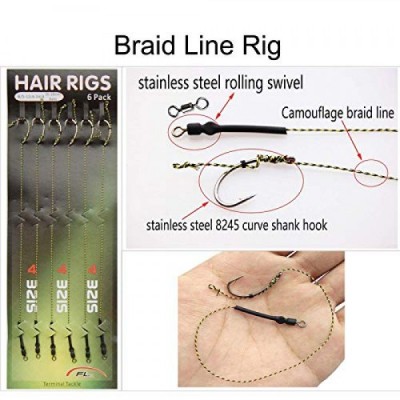 36pcs 잉어 낚시 후크 리더 Boilie Rigs 잉어 낚시 땋은 라인 낚시 후크 수제 잉어 리그 후크 크기 2 #4 #6 #
