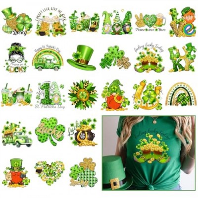 Loozykit Iron on Decals for T Shirt Washable Heat Transfer Vinyl Stickers Theme Iron on Patches Iron on Stickers for DIY Clothing Bag Hat Pillow Craft Decorations (St. Patrick's Day 24Pcs)