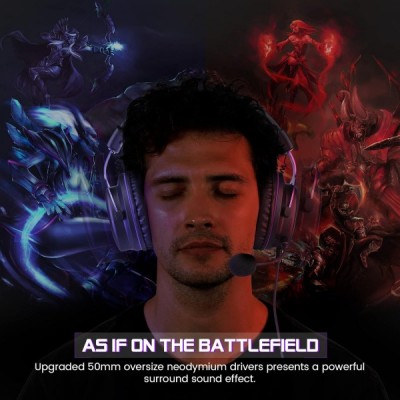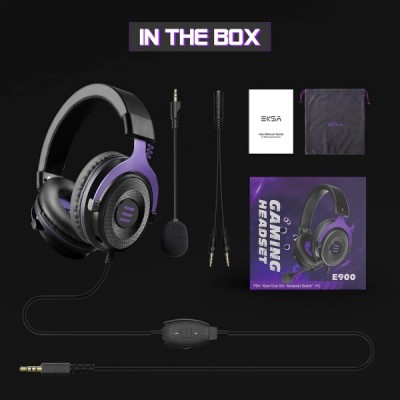 EKSA E900 PC Gaming Headset mit Mikrofon, Abnehmbares Rauschunterdrückung Mic & Stereo Bass Sound, 3,5 mm Jack PS4 Gaming Kopfhörer mit Kabel, PS5 Gamer Headphones für PC, Laptop, Xbox One, Switch Lila