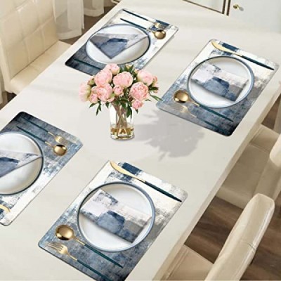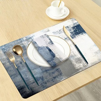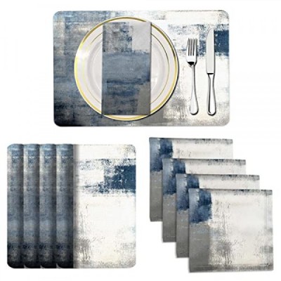 MCALK 파란색 플레이스매트 4개 및 천 냅킨 8개 세트, 현대 미술 플레이스매트, 가정 주방 장식용 추상 미술 페인팅 플레이스매트(플레이스매트 18"x12 천 냅킨 18"x18)