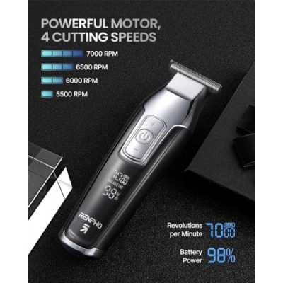 RENPHO Cordless Hair Clippers for Men, Beard Trimmer with LED Display, 4-Speed Hair Trimmer for Men, 0.15mm Professional Barber Clippers, Hair Cutting Kit, 100-240V for Global Travel