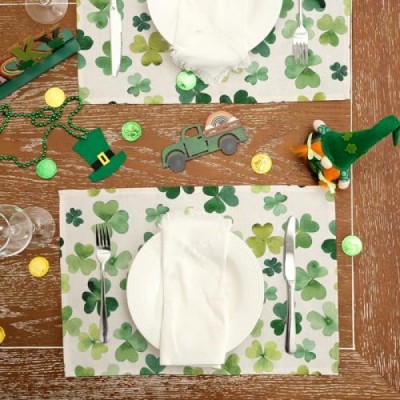 ARKENY 성 패트릭의 날 Placemats 12x18 인치 4개 세트, 토끼풀 녹색 봄 계절 농가 삼베 실내 주방 식탁 매트 장식 홈 파티 AP393-4