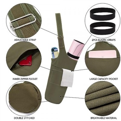 Yoga Mat Bag, Ginsco Yoga Mat Bag Carrier with Adjustable Wide Shoulder Strap, Long Tote Large Side Pocket and Zipper Pocket Fits Most Size Mats Yoga Accessories with 2 PCS Elastic Yoga Mat Strap for Women Men Grils Yogi