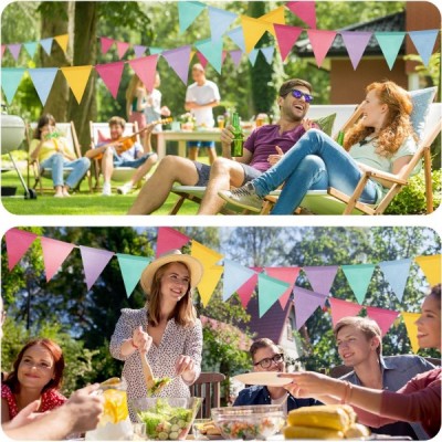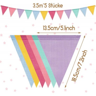 Alintor Wimpelkette Outdoor Wetterfest, 5 Stück Wimpelkette + Jutesäckchen, 60pcs Leinenimitat Wimpel, Girlande Geburtstag Draußen Luftschlangen, Einschulung Deko 17 12,5 cm