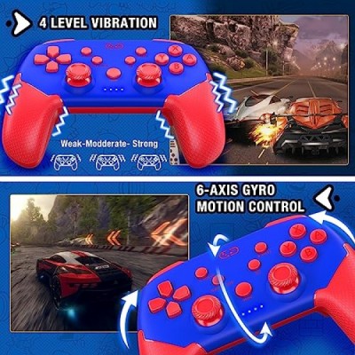 - 【4단계 진동 및 모션 제어】스위치 리모컨에는 이중 전기 모터 진동이 있으며 4단계 조정 가능(없음, 약함, 중간 및 강함)이 있습니다. 탁월한 진동 피드백을 제공하고 몰입감 있는 게임 경험을 향상시킵니다. 6축 자이로 센서가 탑재된 스위치 무선 블루투스 컨트롤러는 게임 컨트롤러의 기울기를 쉽게 감지하고 조정하여 빠른 응답을 제공합니다. 인체공학적이고 미끄러지지 않는 편안한 그립 디자인으로 손의 압력을 줄여줍니다.