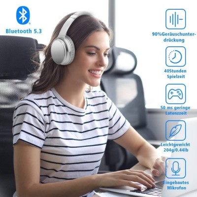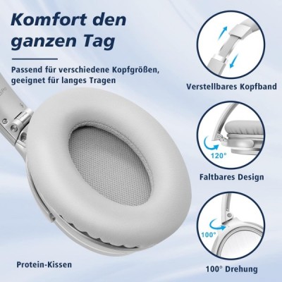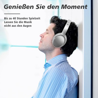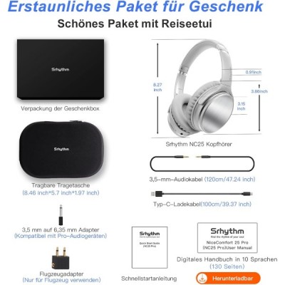 Srhythm NiceComfort 25 Pro Active Noise Cancelling Kopfhörer, Kabellos, Bluetooth V5.3, Headset mit Spielemodus Silber