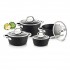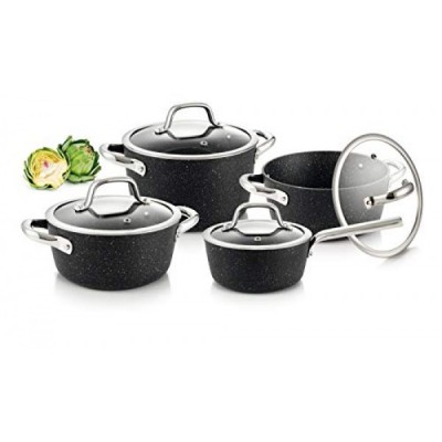 Tescoma PRESIDENT Stone Pot 세트, 8개, 프리미엄 붙지 않는 스톤 코팅, 인덕션 베이스, 모든 밥솥 및 오븐에 적합, 유리 뚜껑 포함, 내구성이 뛰어나고 식기 세척기 사용 가능