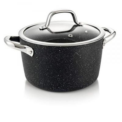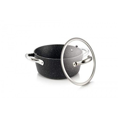 Tescoma PRESIDENT Stone Pot Set, 8 Pieces, Premium Non-Stick Stone Coating, Induction Base, Suitable for All Cookers and Ovens, Includes Glass Lid, Durable and Dishwasher Safe