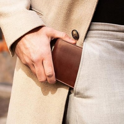 HIDES REPUBL1C® '시드니' 남성용 가죽 지갑 I RFID 보호 I 남성용 지갑 I 12칸 I 남성용 지갑 I 남성용 지갑 I 남성용 지갑 I 남성용 지갑 가죽, 에어태그가 있는 코냑 브라운