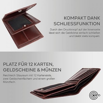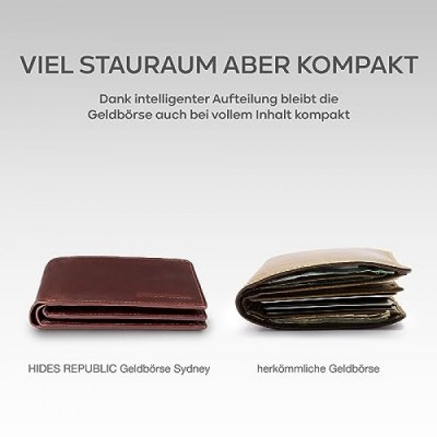 HIDES REPUBL1C® 'Sydney' Men's Leather Wallet I RFID Protection I Men's Wallet I 12 Compartments I Men's Wallet I Men's Wallet I Men's Wallet I Men's Wallet Leather, Cognac brown with airtag