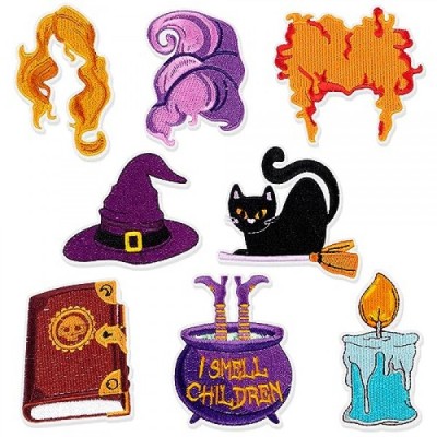 8PCS Halloween Iron on Patches Sew on Embroidered Applique Repair Patch DIY Craft Accessories for Clothing Jacket Jeans Pants Dress Backpack Hat Decorations Gifts (Halloween 8PCS)