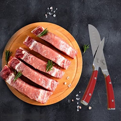 Emeril Lagasse Razor Sharp 2 Piece Chef Knife Set - 5 inch Santoku Knife, 3.5 Inch Stainless Steel Paring Knife, Forged Steel Clad Emerilware - Red Handles